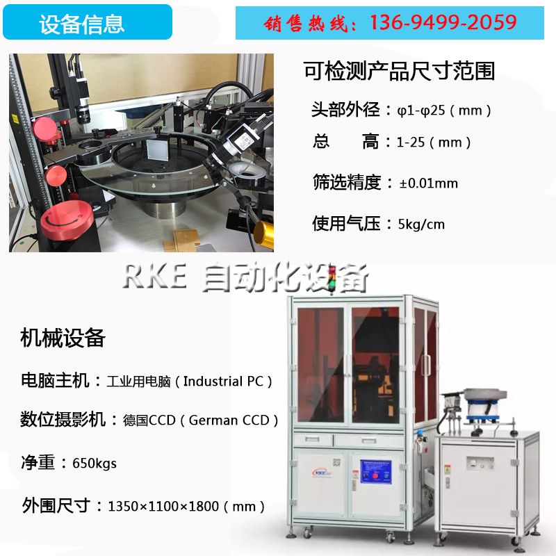 主要是检测螺丝头部直径、多段高度头厚、十字塞孔、头裂、牙外径、牙距、 牙高度、牙角度、斜牙、外裂、侧裂等。 |