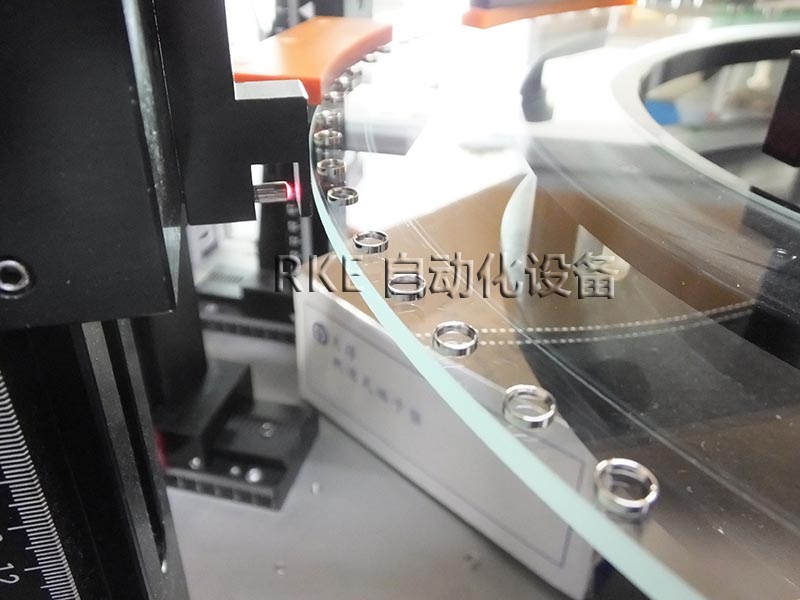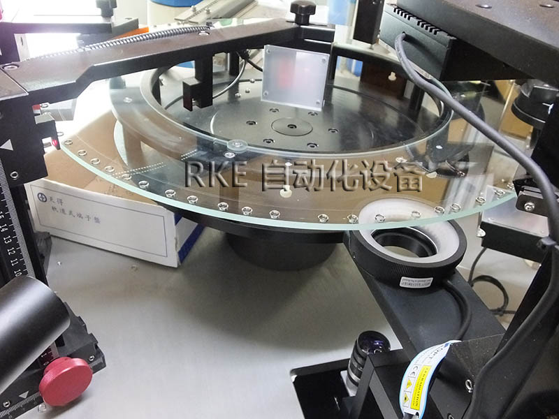 CCD视觉检测五金环产品,利用玻璃的透光性,把物品放在玻璃盘上进行检测,节省劳力,检测速度快,效率高。