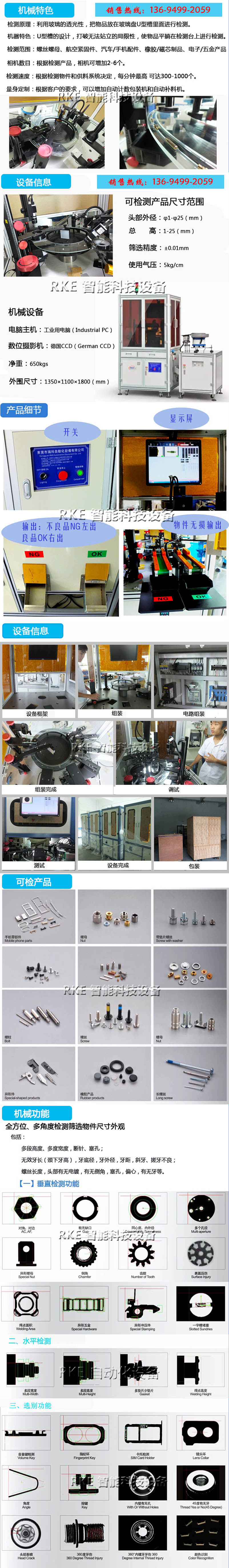 螺丝全方位检测设备,利用玻璃的透光性,把物品放在玻璃盘上进行检测,节省劳力,检测速度快,效率高。